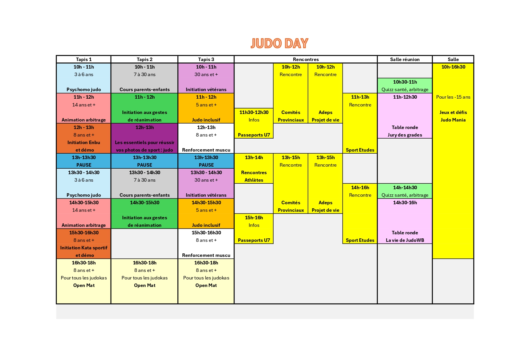 Restauration possible sur place, tous les détails sont sur le site: Judo Day - JudoWB